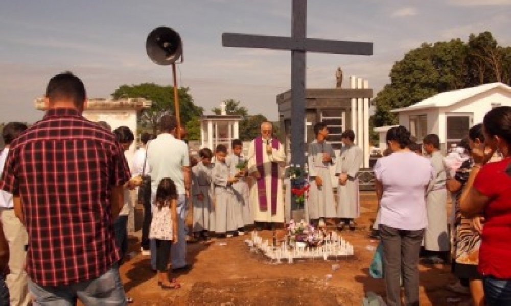 Logo após, todos saíram em procissão percorrendo as ruas da cidade acompanhada com cânticos e rezas, até o Cemitério Municipal. Com a chegada da procissão o padre Gerhard deixou uma mensagem e abençoou a todos.