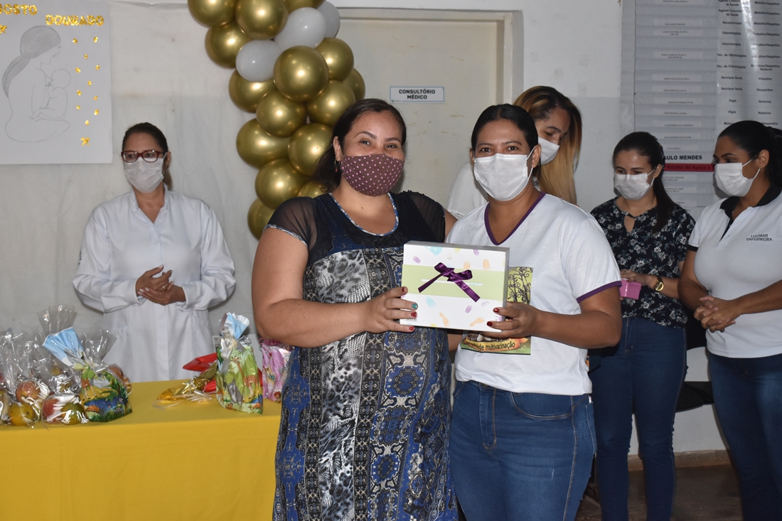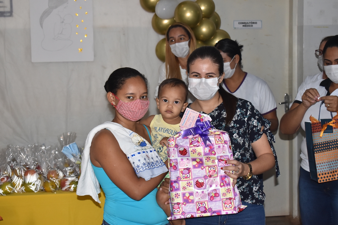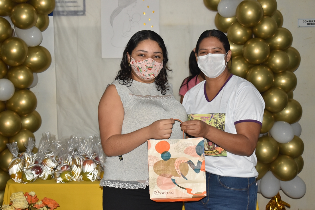 Além da palestra e orientações, as mães presentes participaram de um sorteio de brindes, realizado pela equipe da secretaria de saúde.