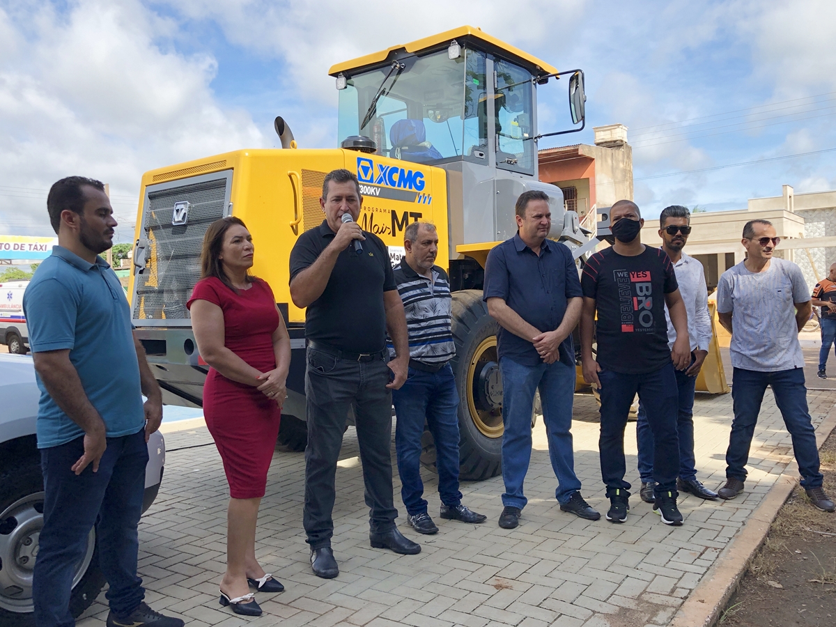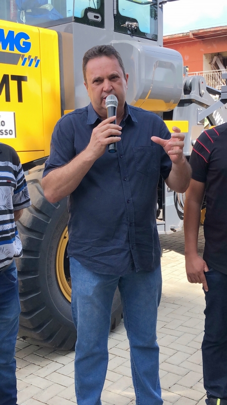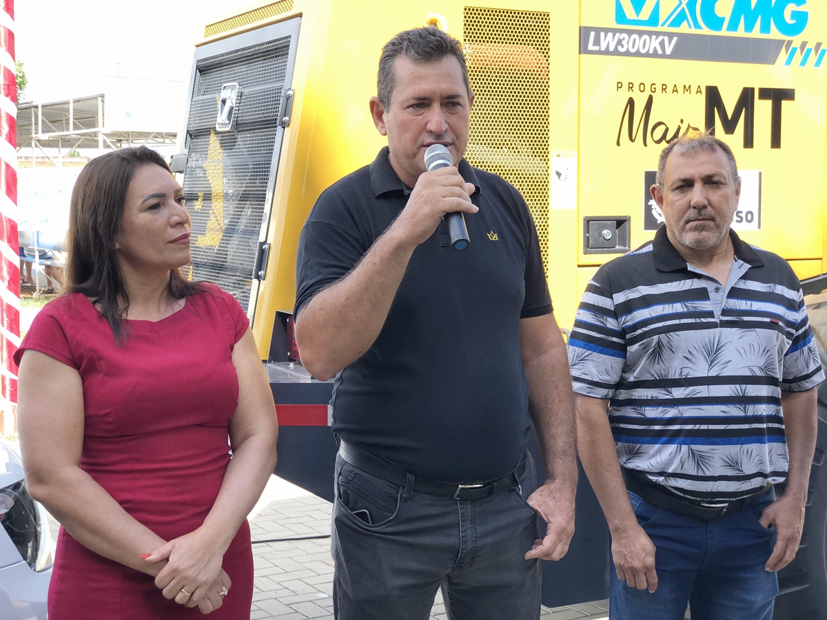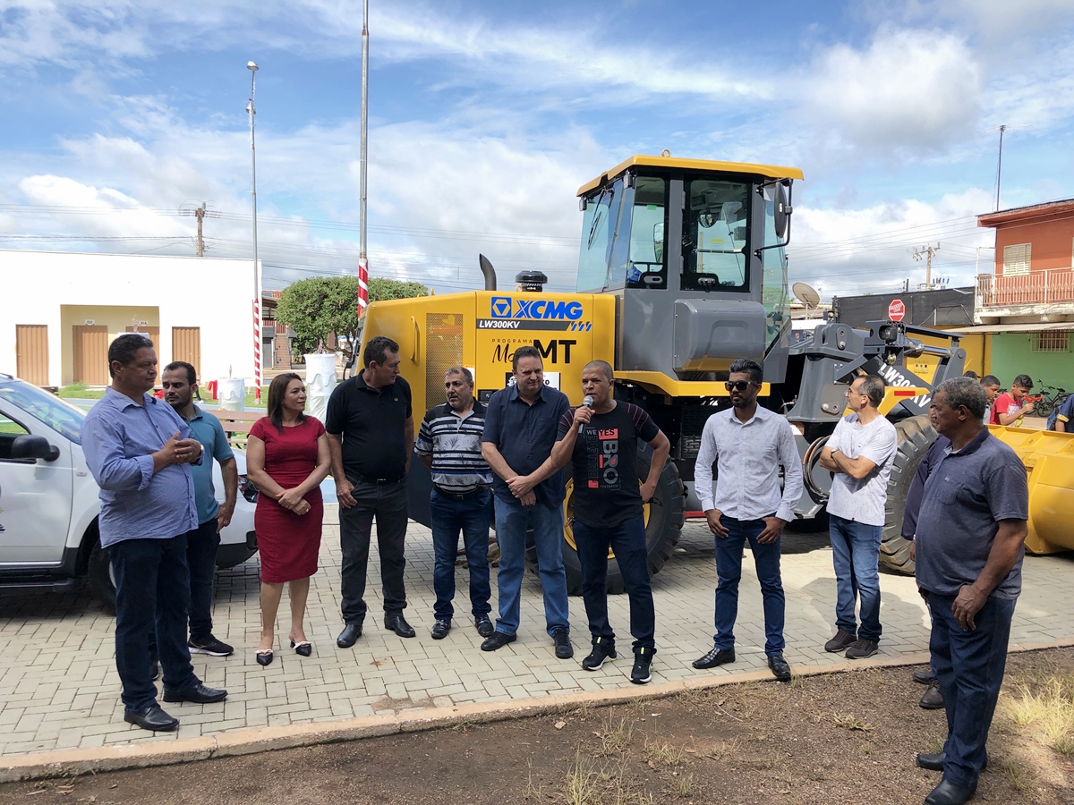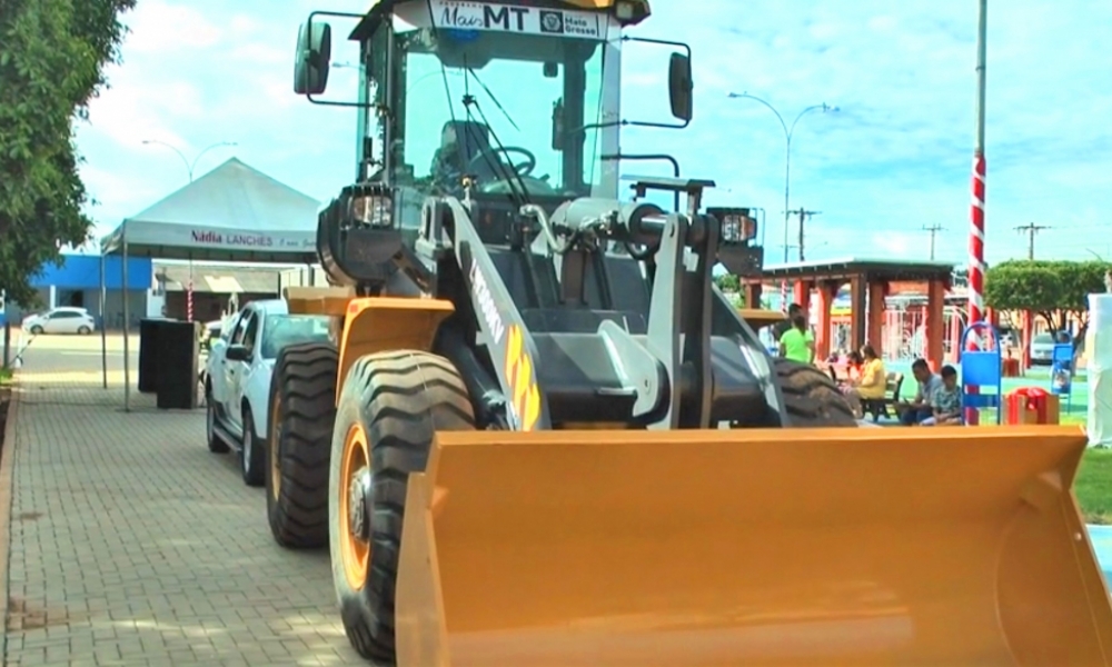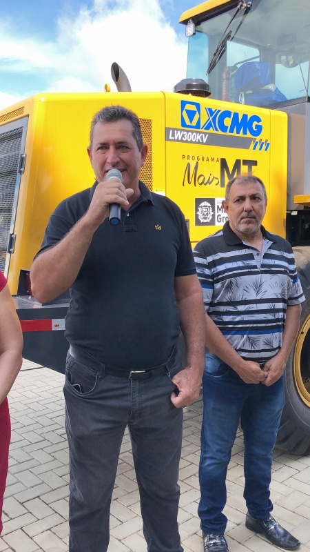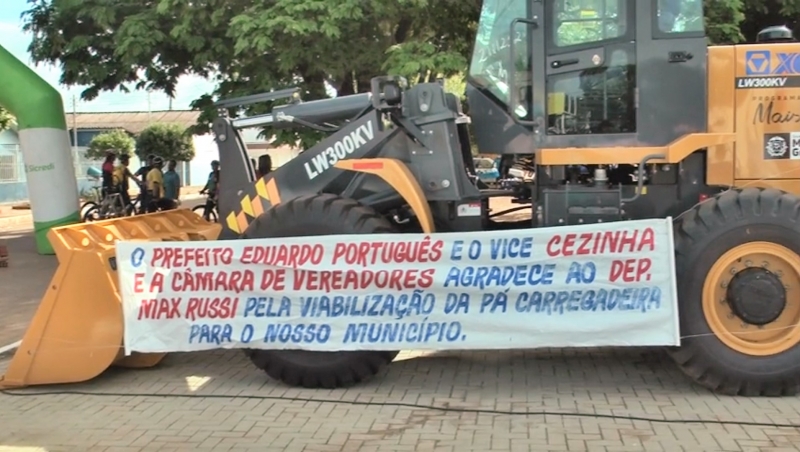 A pá-carregadeira faz parte do pacote de entregas Programa Mais MT do Governo de Mato Grosso e para São pedro da Cipa através do deputado Max Russi.