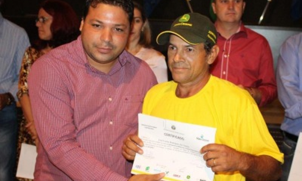 Na ultima terça-feira, dia 01 de abril, ocorreu no Centro de Eventos Jovelina Maria de Almeida a entrega dos certificados do Curso de Operador de Máquinas Agrícolas, do Governo do Estado. Na solenidade o secretário de Agricultura Aparecido Junior, esteve presente representando o prefeito Alexandre Russi.